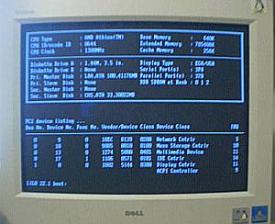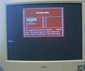 If you want a painless life, use the text interface. The menu interface looks nice, but it clears the screen. Unfortunately, as you can see from the pictures, this clears the screen which has important BIOS information like IRQ allotment and device listings. And NEVER use a graphics interface for lilo. It may look wonderful, but if you ever have problems with lilo, you're going to be one sorry person.