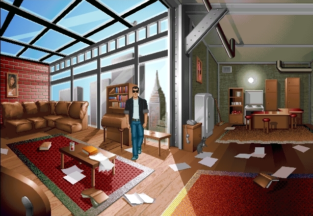 PremiseA terrorist, Bernie Berckson, obtains two nuclear warheads and ransoms the U.S. Government to meet his demands. The government refuses to negotiate, and both warheads are exploded over California and 50,000 people die (they must have been small bombs!). The FBI finds Bernie thanks to the efforts of Agent John Hopkins. The opening animation shows Bernie getting the chair. He gets the first shock and is bloody, but mysteriously survives. The lights go out and he disappears. As Special Agent John Hopkins, you caught him the first time, and now you're after him once again.Playing Hopkins is like watching a live action comic book. The animation is superbly done; tremendous care went into the sound, music, production and visuals. The hand drawn cartoonish animations are some of the best I've ever seen on Linux. The game uses the SDL library with beautiful results. The colour, great music and fullscreen mode really lends itself to enhancing the comic book quality of this game. But don't expect something like a lighthearted Superman graphic novel. The mood of this game is dark, dark, dark. There's enough gratuitous blood and violence to make Friday the 13th look like a Disney flick. And the game is filled with lots nudity, just for nudity's sake. This game is a teenager's dream come true. A problem with some adventures is that the puzzles can be unreasonably difficult, making a trip to a cheat site unavoidable. This game is very reasonable; although they required thought, the solutions to the puzzles made sense. Veteran gamers might find Hopkins easy. Nevertheless, the visuals and music alone are enough to keep everyone interested. |